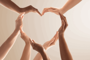 二つの異なる色が融合し、中心にハートという新たな形が生まれる様子は、心のルールを学ぶことで、個人の内面にバランスが生まれ、人との関係性においてポジティブな変化と成長がもたらされることを示唆しています。